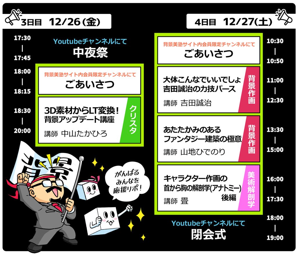 4日目:2025年12月27日(土) 10:30 ~ 19:00 (3講座配信)タイムテーブルはこちら
