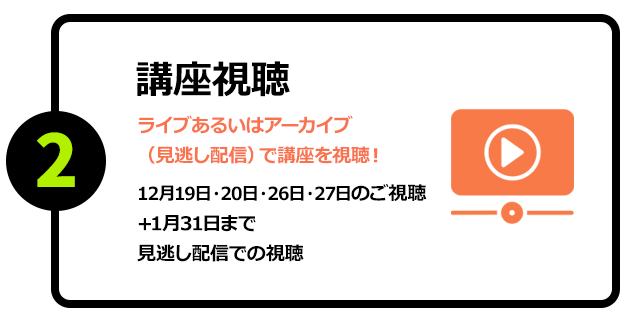 1日目:2025年12月19日(金) 17:30 ~ 20:00 (1講座配信)