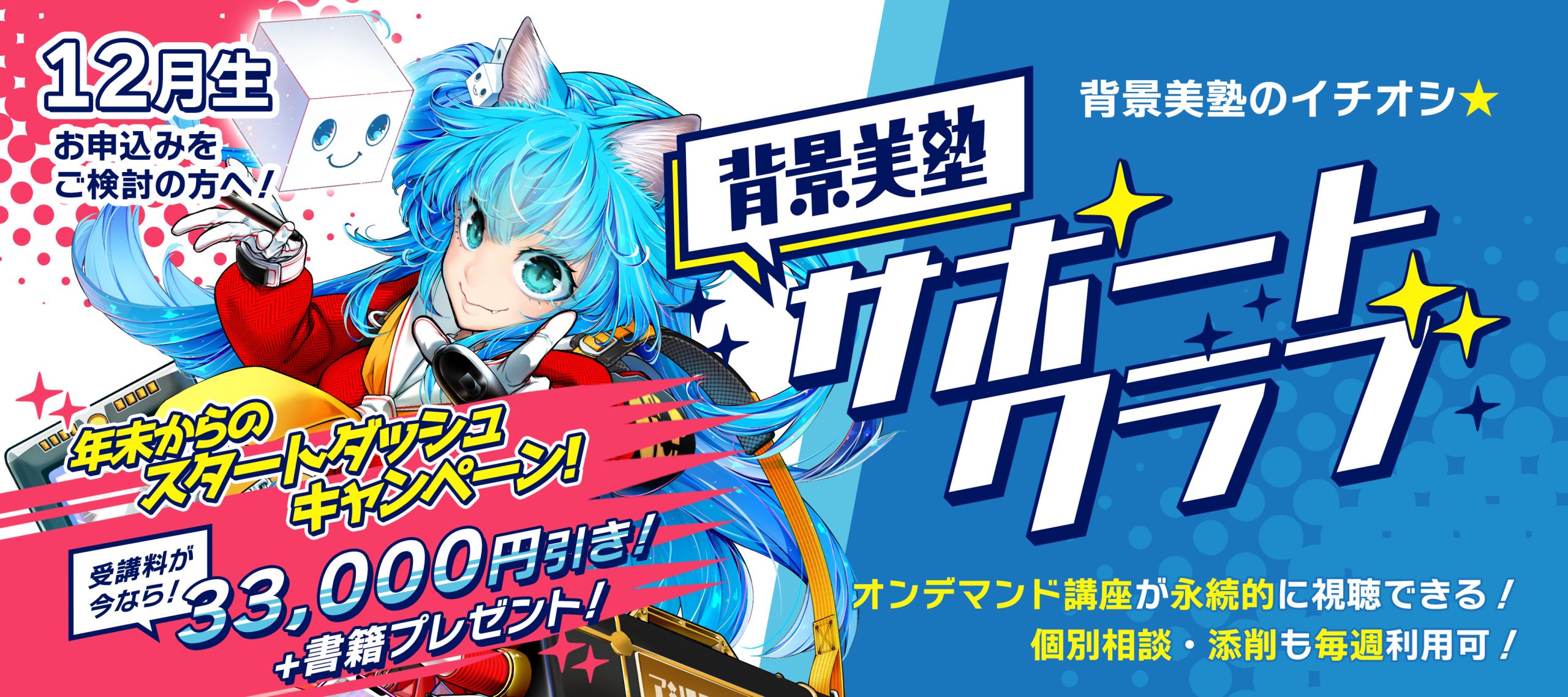 本プランをご受講の方には、特典グッズや割引サービスなど、通常では限定扱いとなっている背景美塾のさまざまなサービスをオトクに受けることができます★