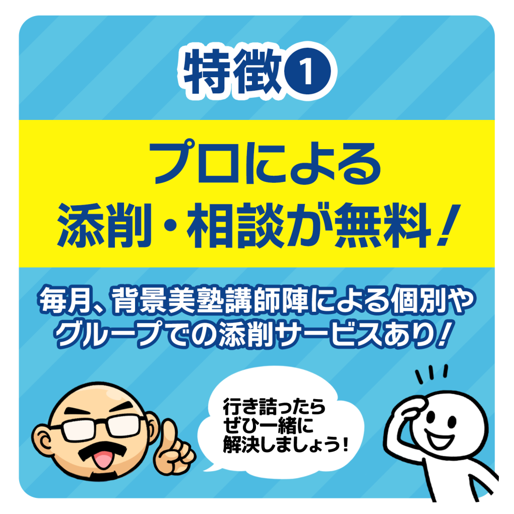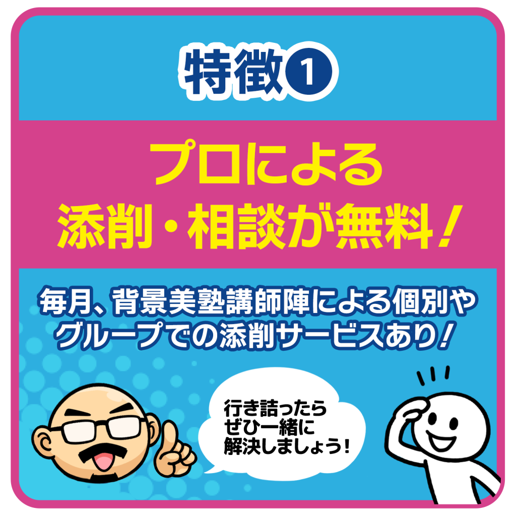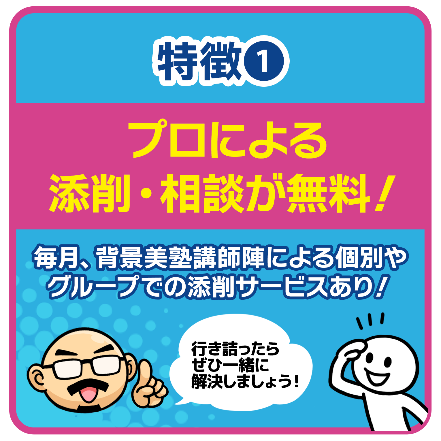 毎月様々なかたちで添削相談を開催しており、背景美塾サポートクラブをご受講中は、すべて無料でご利用いただけます。